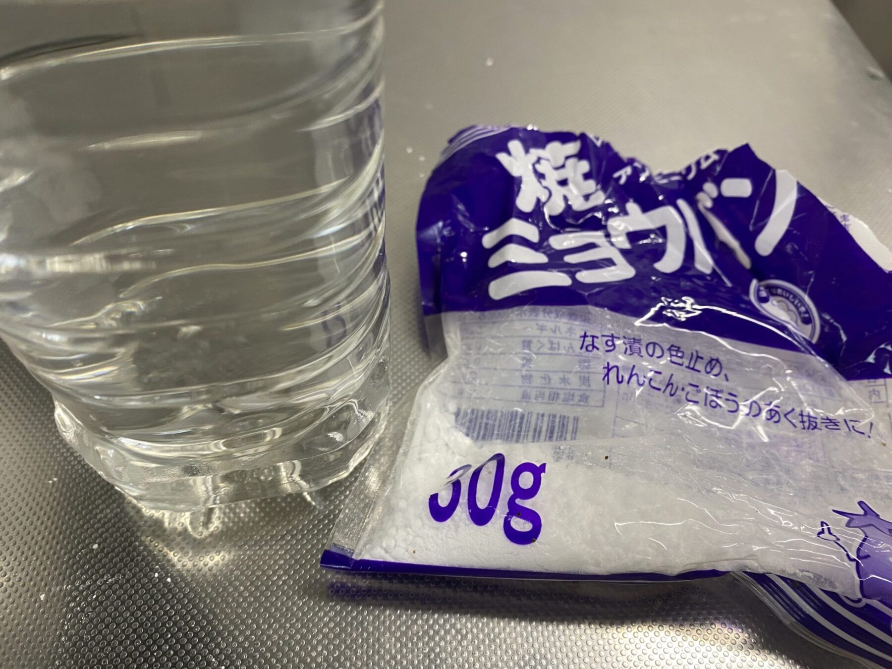 - ミョウバン6gを500mlの湯に溶かし、溶けたらさらに水2Lに混ぜて使う
