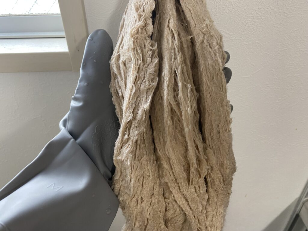 今回の糸の重さからすると約19gのミョウバンを使用しないといけなかったようですが、少ない量で媒染液をつくってしまっています。2回目も同様にしているため、次回(もしかしたら来年)は定量でやってみたいと思います。